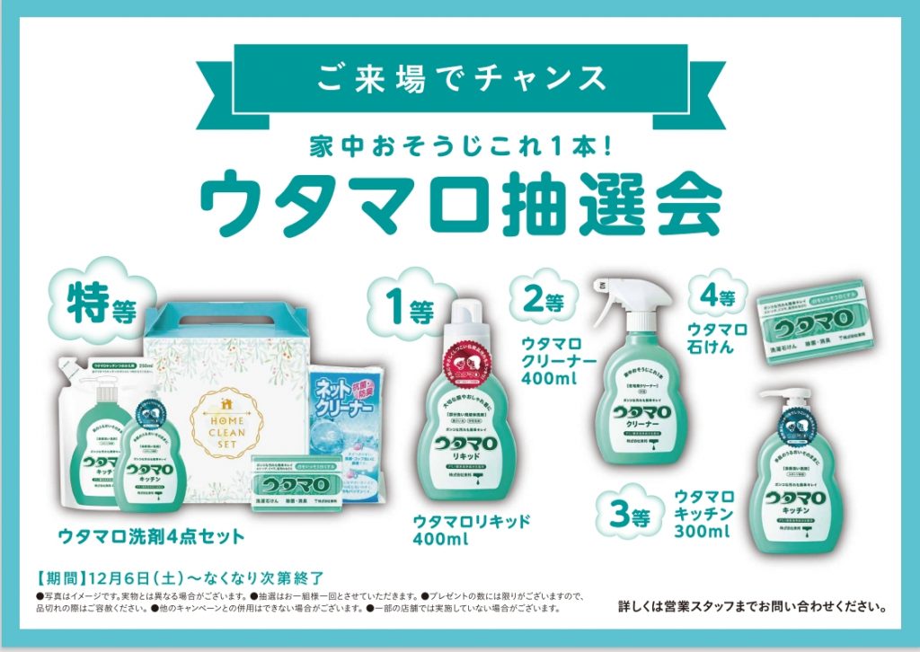 ご来場で万能石鹸ウタマロ抽選会ありますよ~~~🫧🫧🫧