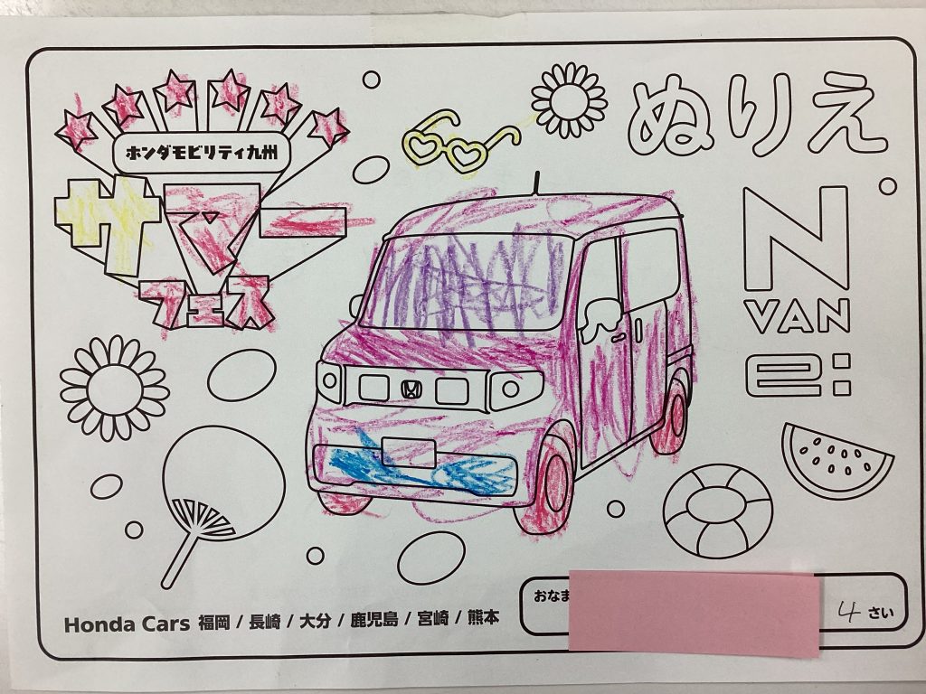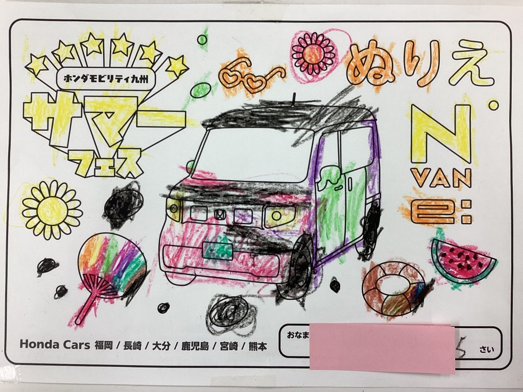 夏Honda イベント ぬりえ店長賞の紹介です♪