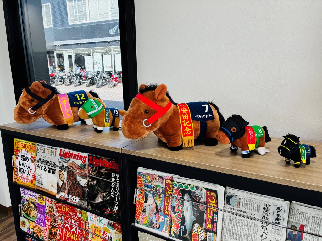 午年に因んで馬のぬいぐるみを飾っています(^^)v