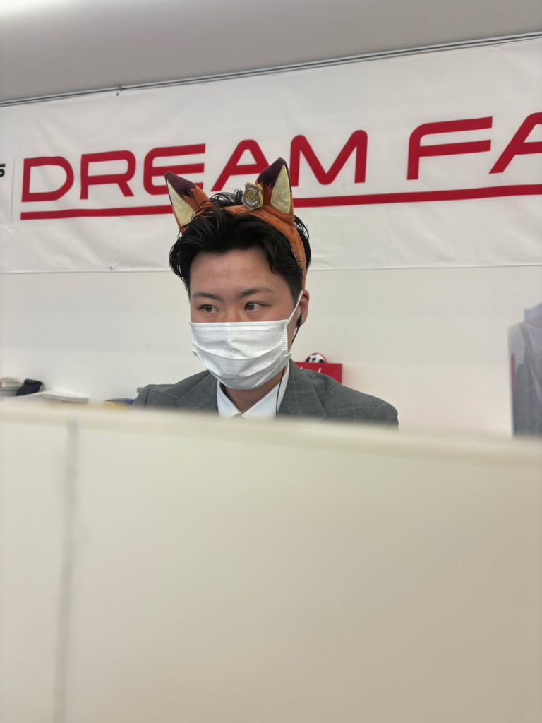 営業の藤沢さんです(^▽^)/ もうキツネさんの魔法はとけてしまっていますが、いつでも皆様のご来店お待ちしております!!