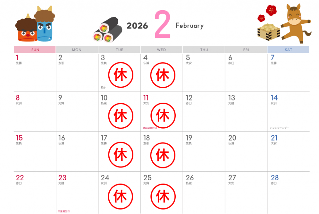 本日は2月の営業カレンダー のお知らせです📅