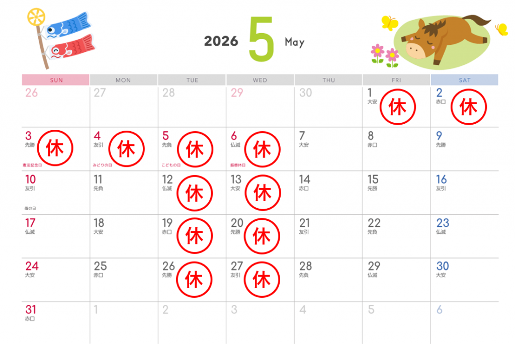 🚧 5月1日(金)~5月6日(水)