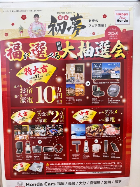 さて、1/4(日)~1/12(月)まで新春初夢フェアをおこなっております