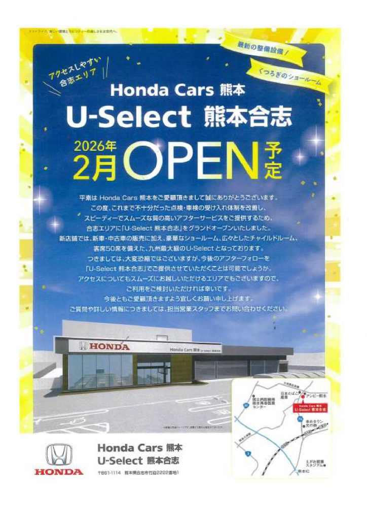 店舗名 Honda Cars 熊本 U-Select 熊本合志