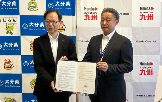 九州各県において災害が発生した場合に、各県及び相互に連携し、円滑な災害応急対策を実施することを目的として弊社が保有する外部給電可能な車両や発電機の提供により、避難所における給電等を行うことを目的に締結を行います