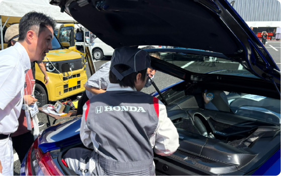 小・中学生キッズを対象に自動車や自動車整備の魅力を感じていただくため、楽しみながら整備作業を体験できる展示会「ジュニアメカニック2025@FUKUOKA」各メーカー参加の中HondaはスーパースポーツカーNSXを使用し パソコンによる故障診断、試乗会を開催し多くのキッズに大盛況でした。