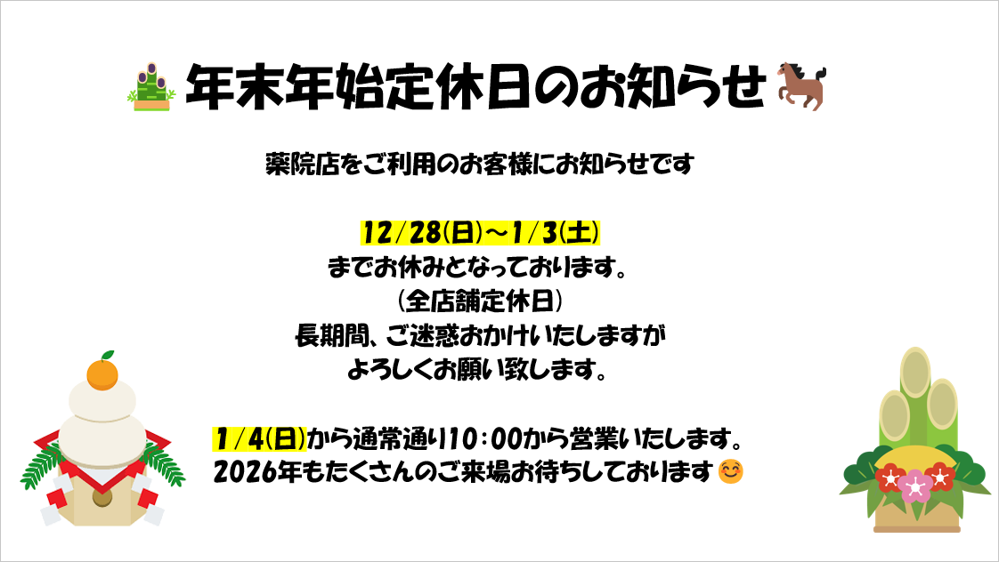 🎍年末年始の店休日と新春フェアのご案内🎍