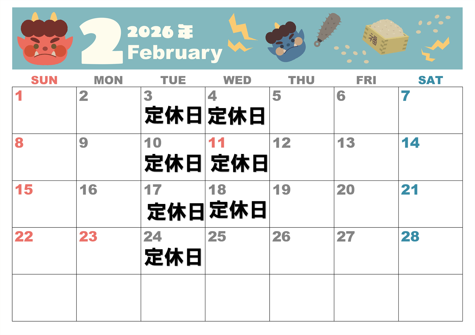 ■店舗休日